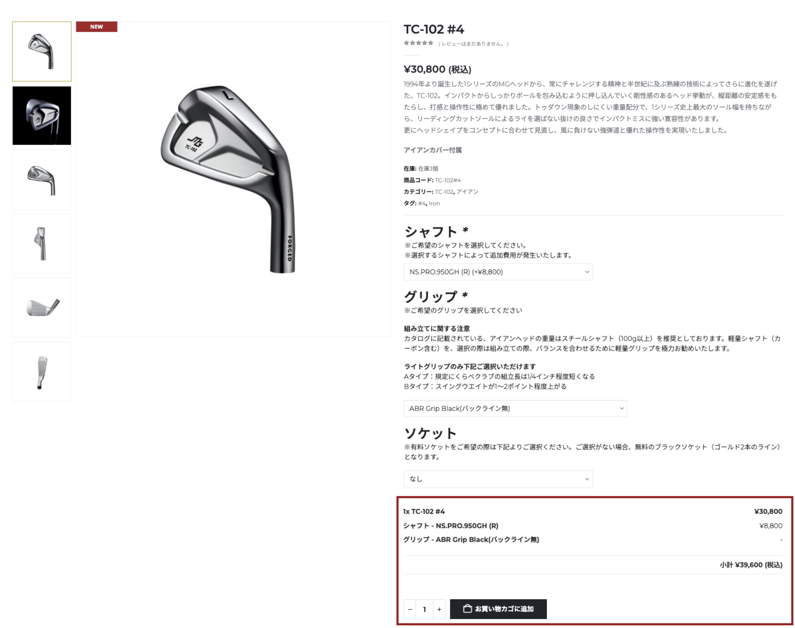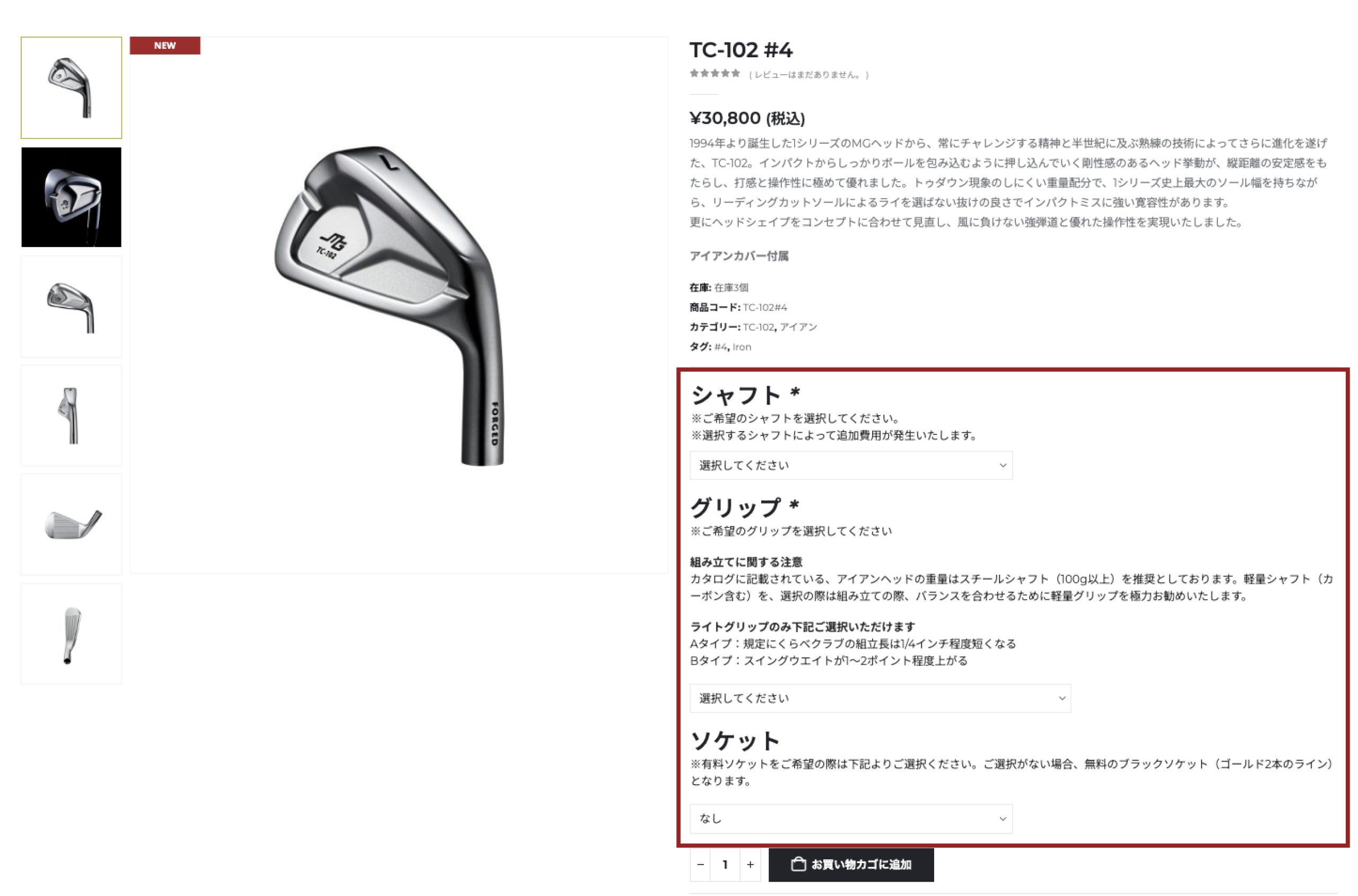 詳細ページでは、シャフト・グリップなどのオプションをお選びください。