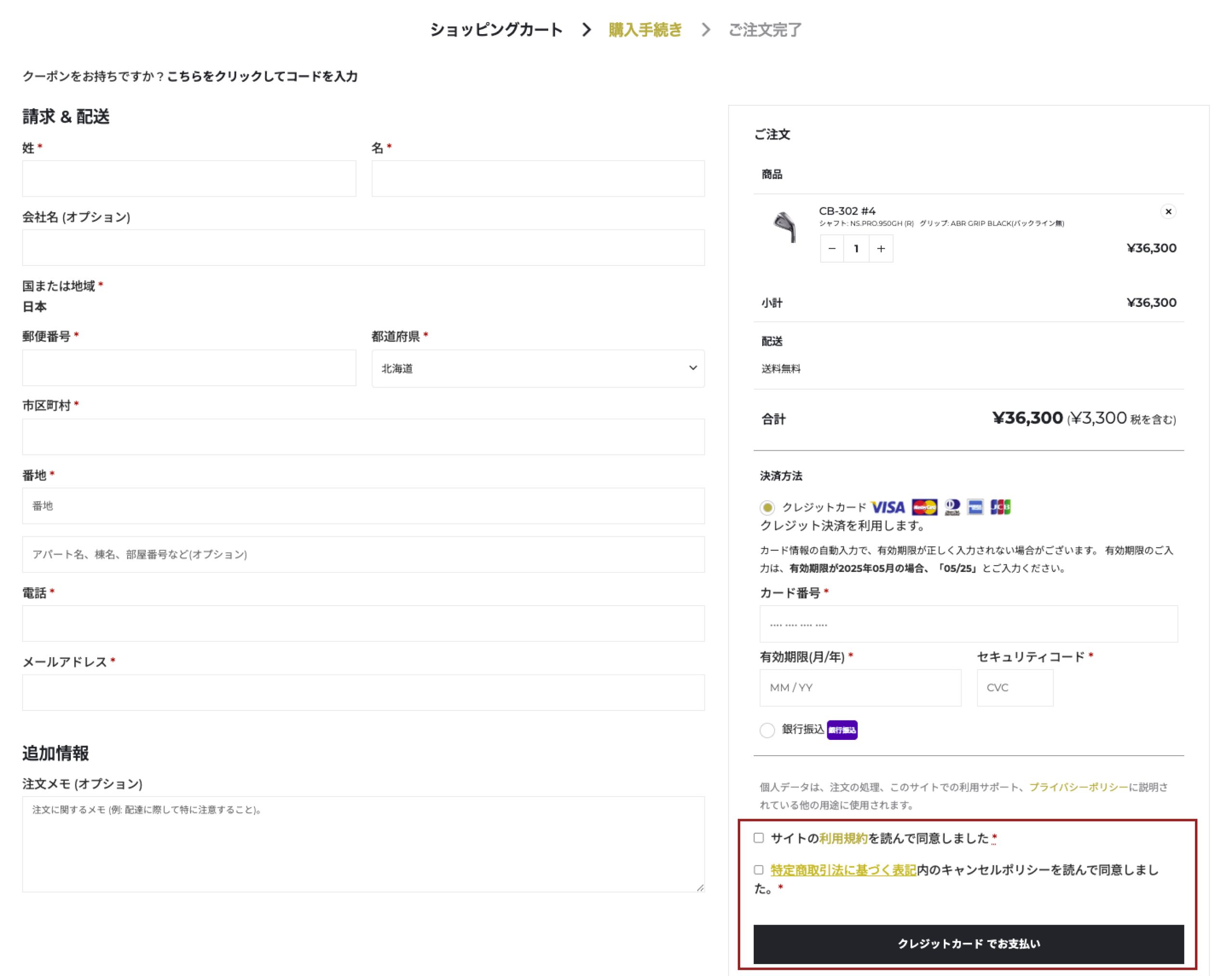 STEP3必要事項を記入し、注文を確定する