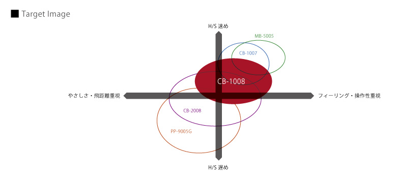 上級者が満足する操作性のよい小振りでシャープな形状でありながら、CB-1000 シリーズ史上最大となるソール幅や低重心設計で、ミスに強く球が上がりやすい、やさしいモデルです。